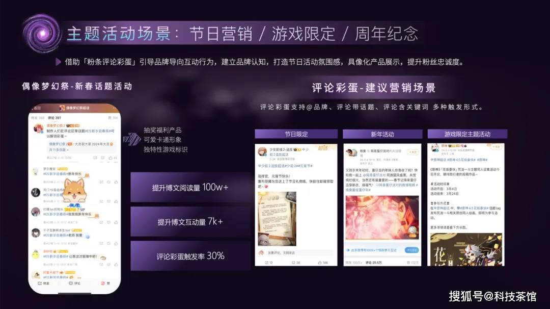 偶像夢幻祭新春活動,廠商通過“評論彩蛋”趣味化游戲展示,增加玩家互動樂趣,從而提升博文閱讀量和活動傳播效果,最終,博文閱讀量提升超100萬,評論彩蛋觸發(fā)率高達(dá)30%以上;