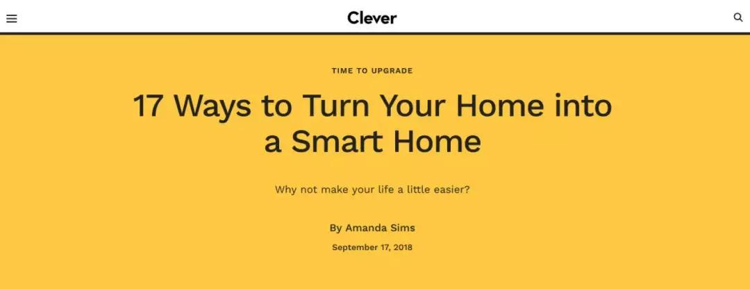 去年9月,美國科技媒體Clever在一篇名為《17 Ways to Turn Your Home into a Smart Home》(讓你家變成智能家居的17種方法)的文章中介紹了一個最簡單粗暴的辦法: