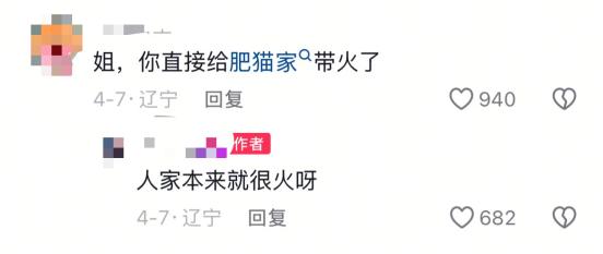 第四,達人的“種草”力量也在助力創(chuàng)新產(chǎn)品破圈。抖音上,一位百萬粉絲博主分享了一則肥貓鮮森購買攻略的視頻。底下一位網(wǎng)友說,她帶火了肥貓家。這位博主回應道,肥貓家本來就很火。對此,張星羽告訴伯虎財經(jīng),品牌以店播為主,他們很少與達人合作,但因為認真做產(chǎn)品,很多達人會因為喜歡而自發(fā)地分享。