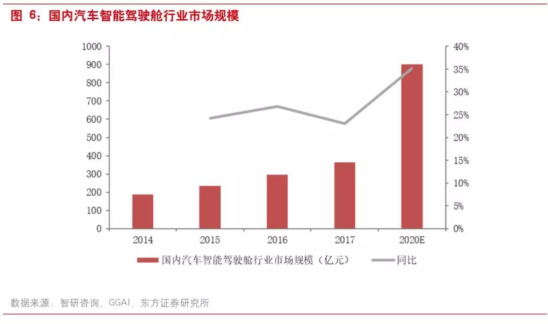 這個(gè)過程將非常迅猛。根據(jù)智研咨詢和GGAI 的數(shù)據(jù),2014年至2017年之間,汽車智能駕駛艙行業(yè)市場規(guī)模從188億元增長到364億元,年均增長24.7%。