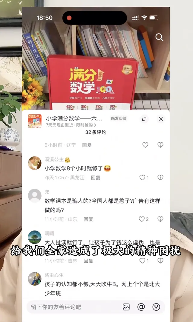 更令博主憤怒的是,侵權視頻評論區出現大量針對其兒子的惡意辱罵,甚至有用戶質疑其“利用孩子炒作”,而博主明確表示從未使用過作業幫產品,并強調“兒子數學能力與作業幫課程無關”。