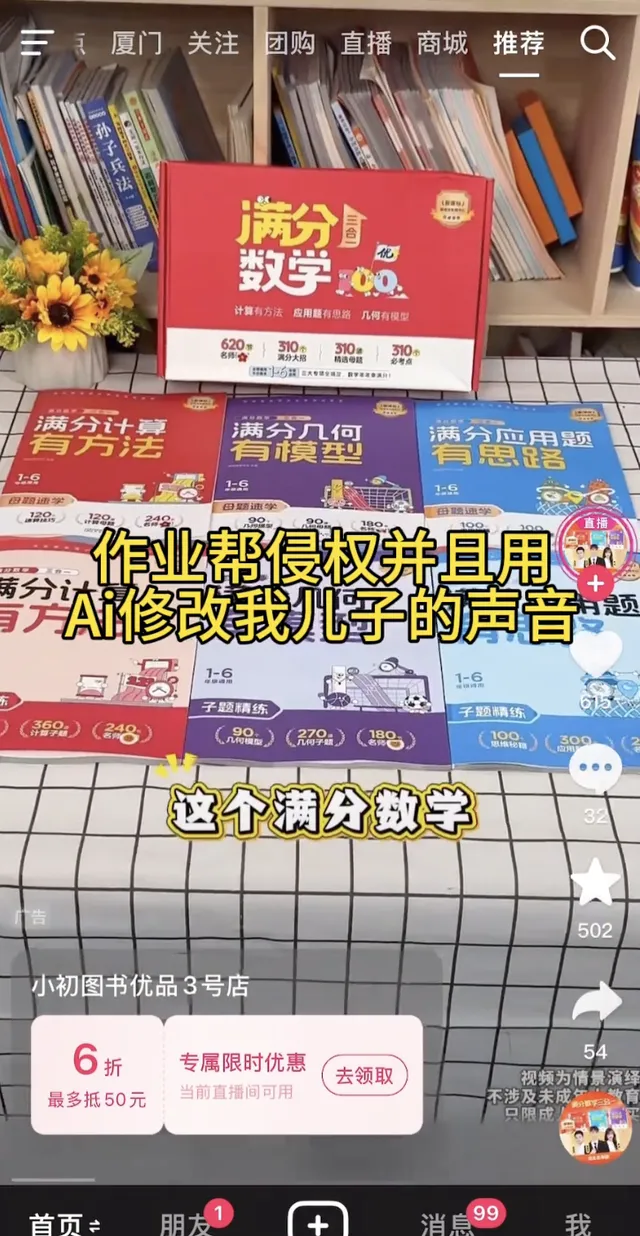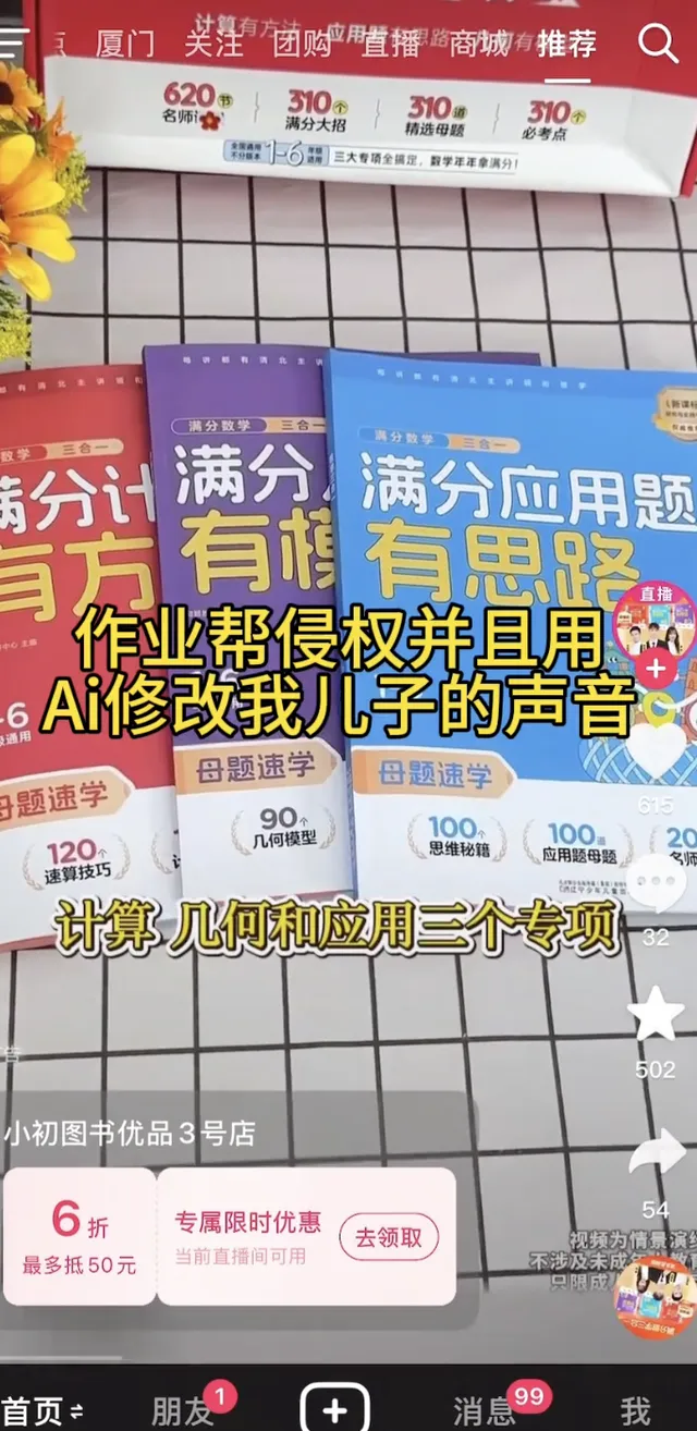 據博主“辣媽行動西西”發布的聲明及視頻證據顯示,其原創內容中記錄兒子日常學習場景的視頻被作業幫全網分發,且原視頻中孩子的真實聲音被AI技術替換為機械合成音,用于推廣一款宣稱“8個月學完6年小學數學”的課程。