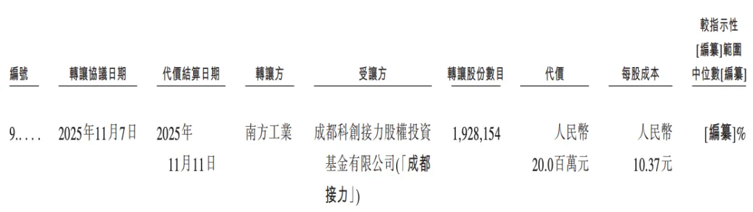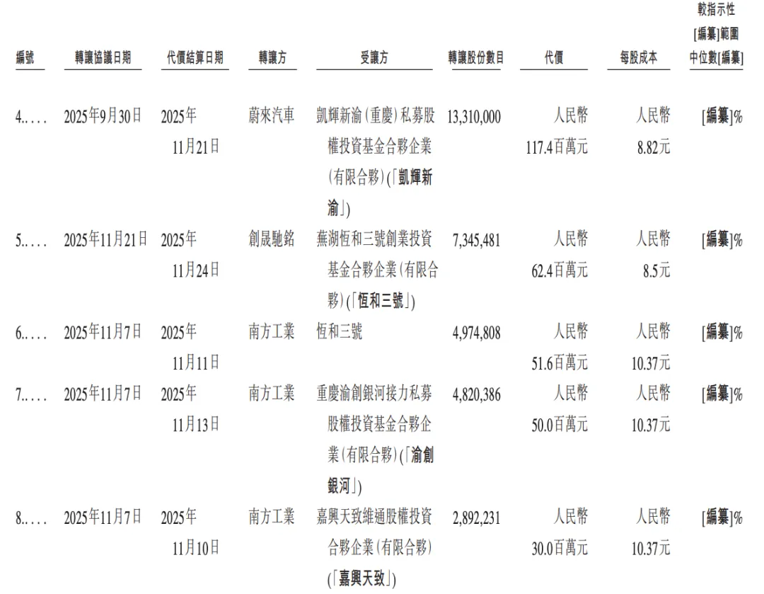 相比之下,南方工業(即南方資產)則于2025年11月向恒和三號、渝創銀河、嘉興天致、成都接力轉讓阿維塔的部分股權,分別作價約5160萬元、5000萬元、3000萬元和2000萬元,合計1.5億元,每股成本為10.37元,和C輪融資一致。