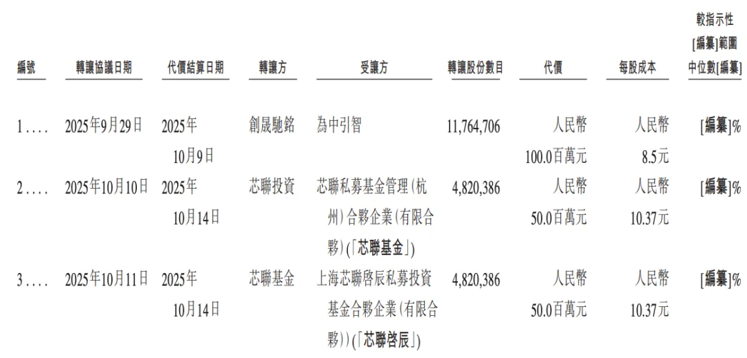 2025年9月,創晟馳銘再向溫州為中引智創業投資合伙企業(有限合伙)(「為中引智」)轉讓阿維塔的部分股權,作價1億元;2025年11月,創晟馳銘進一步向蕪湖恒和三號創業投資基金合伙企業(「恒和三號」)轉讓股權,作價6240萬元。