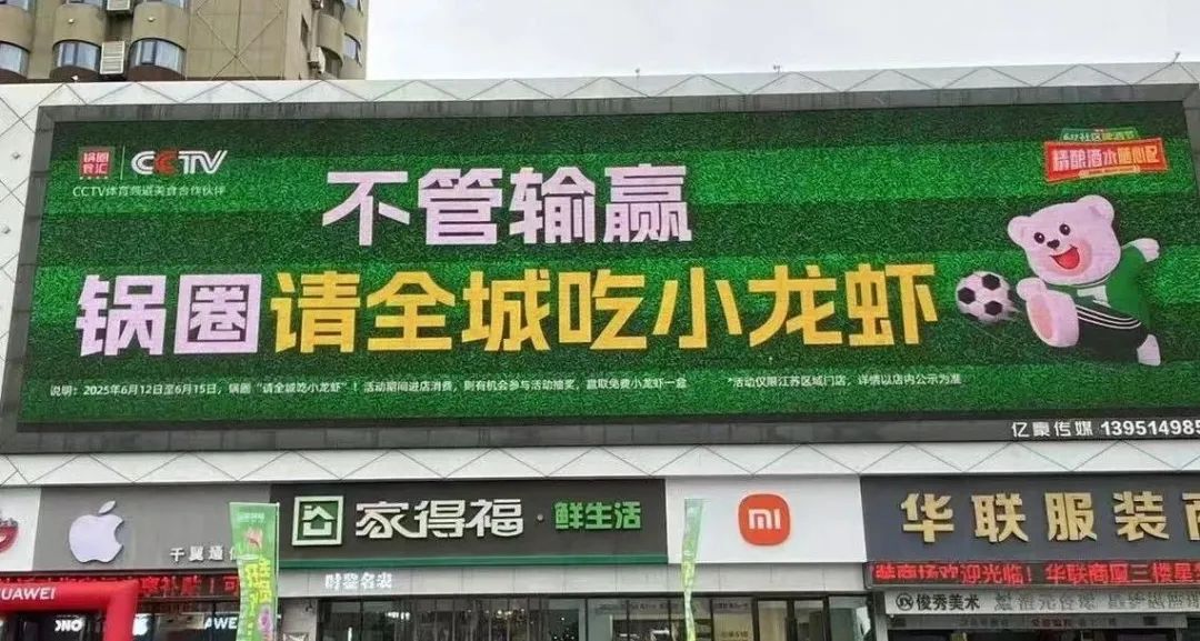 另一種情緒來(lái)自突然爆發(fā)的熱點(diǎn)。今年蘇超大火,“沒(méi)有假球,只有世仇”的恩怨局讓比賽場(chǎng)場(chǎng)爆滿,場(chǎng)均觀眾破萬(wàn)甚至超兩萬(wàn)。鍋圈在江蘇各地,以玩“梗”的態(tài)度為各市加油,讓球迷感受鍋圈對(duì)于蘇超的熱愛(ài),從而使得這場(chǎng)傳統(tǒng)營(yíng)銷(xiāo)也從單向輸出變成了品牌與用戶的雙向互動(dòng),強(qiáng)化“看蘇超,吃鍋圈”的印象。